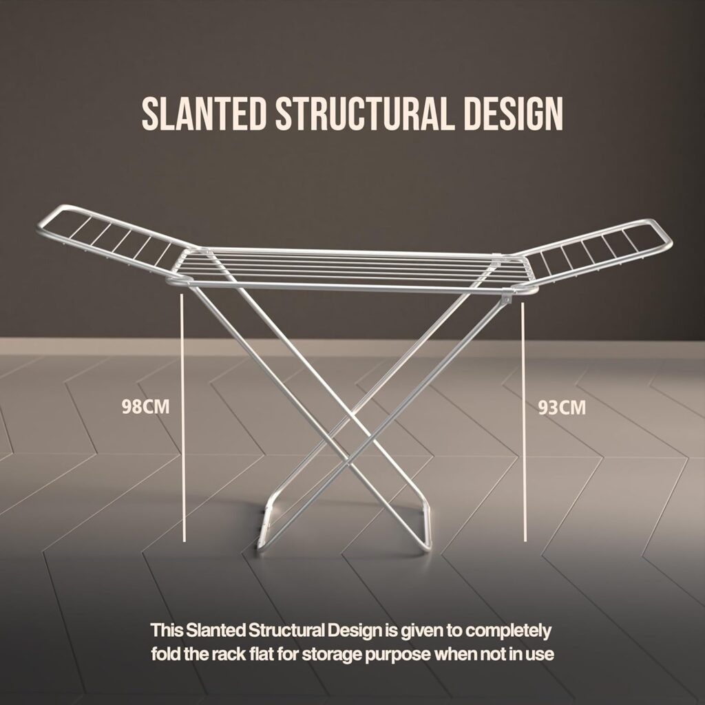 Amazon Basics Premium Mild Steel Cloth Drying Stand – 3 Way Folding, Lightweight, 42 Feet Drying Length, 20 Drying Rails (Silver), Pack of 1