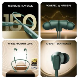 boAt (2025 Rockerz Trinity Grande, Upto 150 Hrs Battery, Hi Res Audio by LDAC, Fast Charge, Dual Pair, AI- ENx Technology, IPX5, Bluetooth Neckband, Wireless with Mic Earphones (Green)