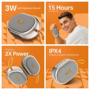 boAt (2025 Stone 110 Bluetooth Speaker with 3W Signature Sound, Up to 15Hrs Playback, Built-in Mic, TWS Feature, Bluetooth v5.4, AUX Port, Voice Assistant & IPX4(Groovy Grey)