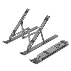 amazon basics Laptop Stand, Height-Adjustable, Foldable, Portable, Ventilated, Fits Up to 15.6-Inch Laptops (Aluminium Alloy, Silver)