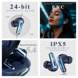 truke New Launch Mega 10 True Wireless in Ear Earbuds W/ 24-Bit Lossless Spatial Audio, 70H Battery Fast Charge Buds, Dual Pairing, 13mm Drivers TWS, Low Latency(40ms), Matte Finish, ENC (Royal Blue)