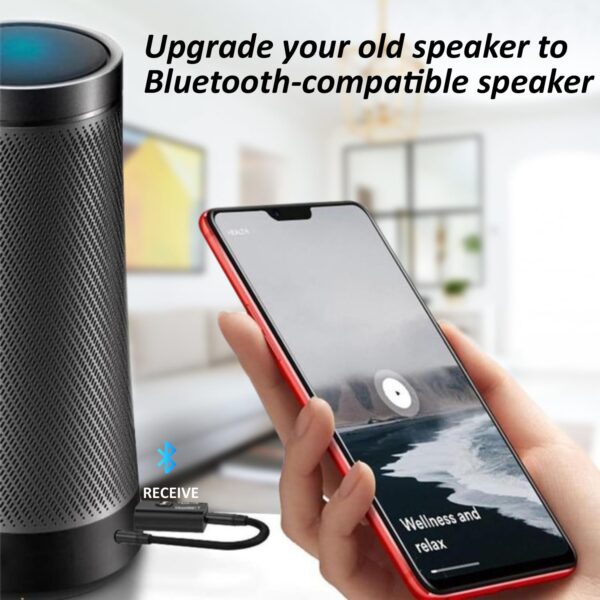 STRIFF Bluetooth Car Adapter, Mini Bluetooth 5.0 Transmitter Receiver Wireless 3.5mm Aux Jack Adapter Hands-Free Car Kit Built-in Mic for Car Aux, Home, Headphones, PC,TV and More(Black)