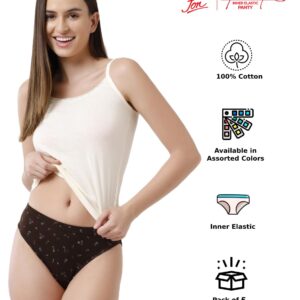 Rupa Jon Ashwarya Printed Panties for Women, 100% Cotton Fabric, Anti-Bacterial, Pack of 5