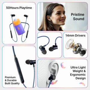 pTron Newly Launched Tangent Evolve w/ 50Hrs Playtime, HD Mic, Pristine Sound, Bluetooth V5.3 with Dual-Device Pairing Wireless Neckband, Voice Assistant, Type-C Fast Charging & IPX4 (Black)