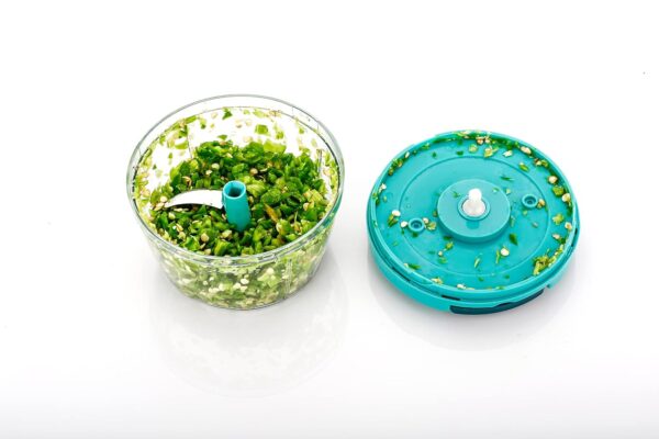 Chop vegetables, fruits, and dry fruits in seconds with Clazkit Plastic Kitchen Dori Chopper. Features 3 sharp stainless steel blades and 450-550ml capacity for effortless meal prep. Color may vary.