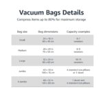 Heavy-duty plastic vacuum-seal compression bags Compresses clothing, linens, and more down 80% Defends against damage from insects, mold, odors, and more Hand pump included or connect to vacuum hose for quick compression Air tight valve and double zipper closure