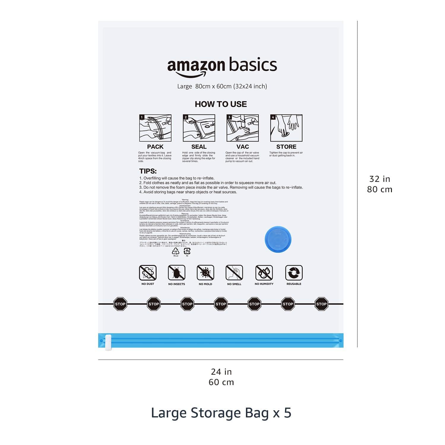 amazon basics Vacuum Compression Storage Bags with Hand Pump – Large, 5-Pack