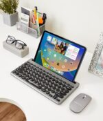 Amazon Basics Wireless Keyboard and Mouse Set with Bluetooth multiconnect, 2.4GHz Receiver,1600 DPI, Smartphone/Tablet Holder, Built in Rechargeable Battery