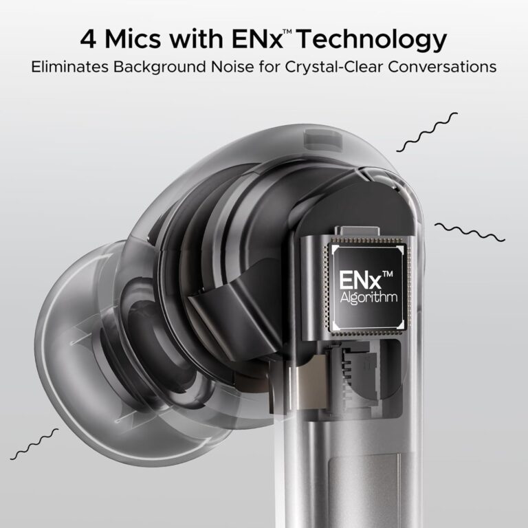 Quad Mics with ENx Technology: Enjoy calls with high clarity indoors or on the go with the boAt Airdopes 111v2 TWS Earbuds. ENx-powered quad mics cancel background noise so you won’t have to search for a quiet spot.