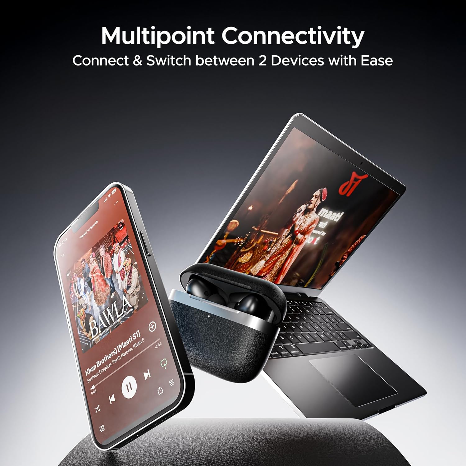 Multipoint Connectivity: Thanks to multipoint Bluetooth connectivity, you can pair Airdopes 111v2 to two devices, stay connected to both devices at once, and switch between them without reconnection hassles.
