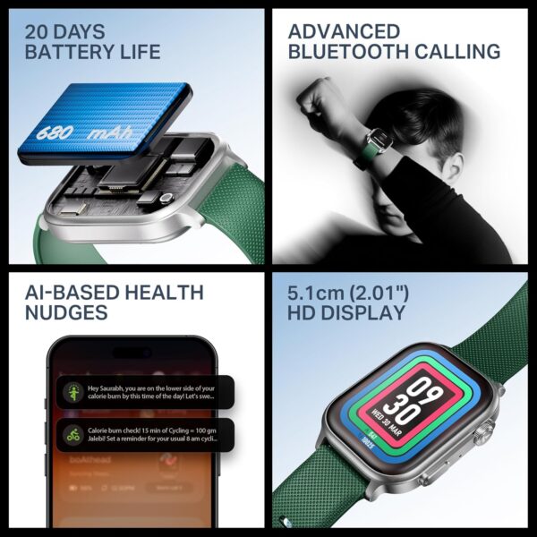 boAt New Launch Storm Infinity Max, 20 Days Maximum Battery, Biggest Battery Capacity Ever! 2.01″ (5.1cm) Display, Functional Crown, AI Nudges, BT Calling, Smart Watch for Men & Women (Deep Green)