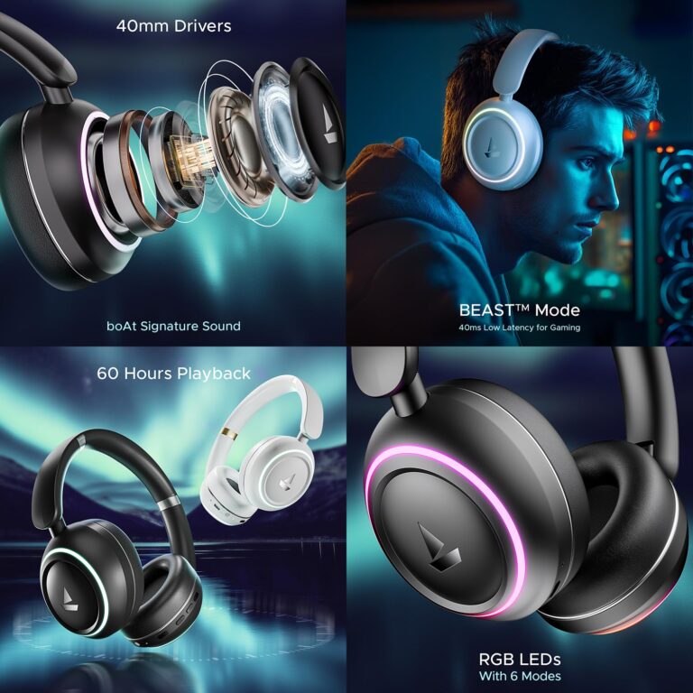 boAt Rockerz 480 W/RGB LEDs, 6 Light Modes, 40Mm Drivers, Beast Mode, 60Hrs Playback, Enx Tech, BT V5.3, Adaptive Fit & Easy Access Controls, Bluetooth Over Ear Headphones(Black Sabre)