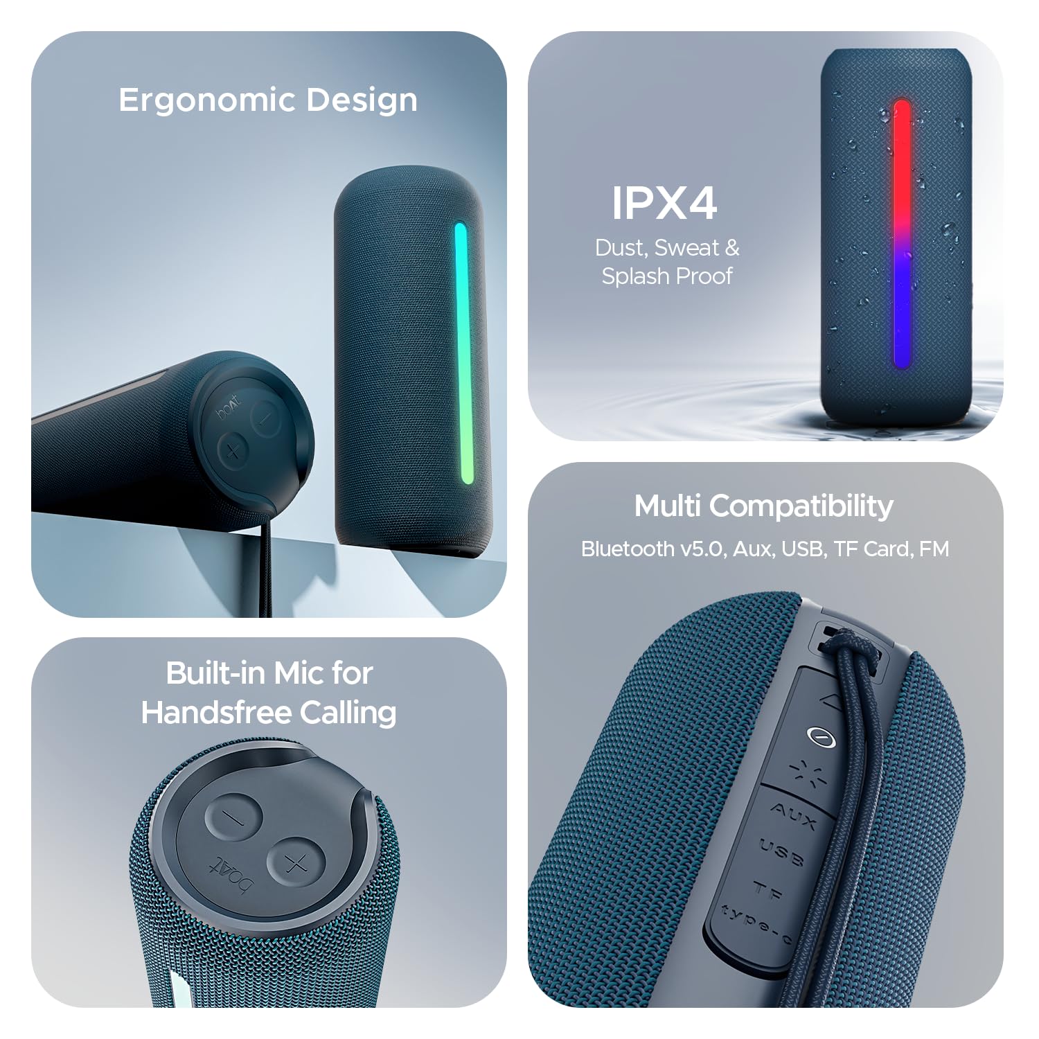 boAt Stone Spinx Pro Bluetooth Speaker with 20 W RMS Sound, Up to 8 hrs of Playtime, BTv5.0, Built-in Mic, RGB LEDs, TWS Feature, TF Card, AUX Port & USB Type-C Port(Tropical Blue)
