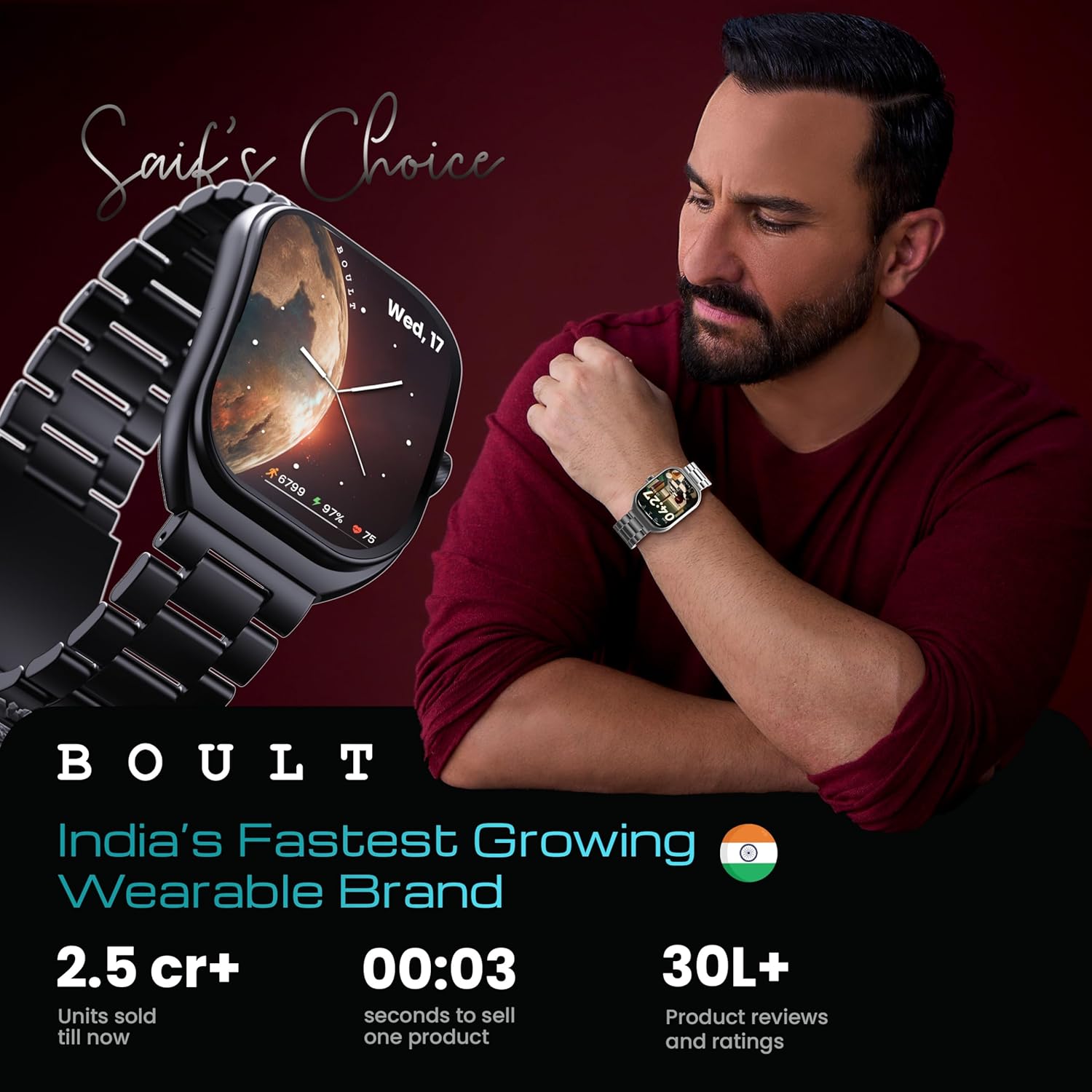 Boult Newly Launched Trail Pro Smartwatch 2.01” 3D Curved Screen+AMOLED, BT Calling 5.3, 600 Nits Brightness, IP68, 250+ Watchfaces, 120+ Sports Modes, AI Voice Assistant, SpO2 Tracking (Metal Black)