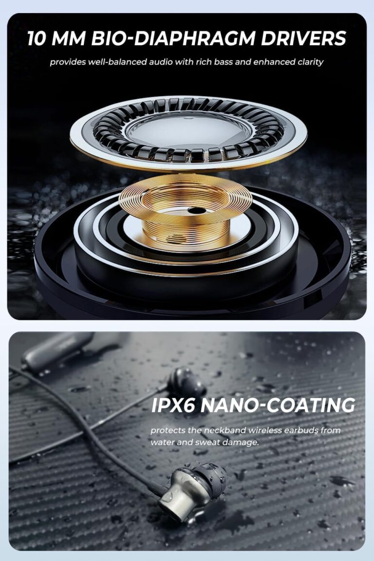 Durable and Versatile: Water-resistant, sweat-proof, and dustproof construction protects your neckband from the elements, while multipoint technology allows connection to two devices simultaneously. Available in Red and Black.