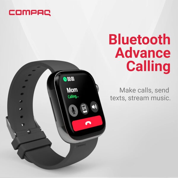 Compaq Q Watch Dimension Series with 1.81″ HD Display| BT Calling| Instant Messaging Notification| Blood Pressure Monitoring| Heart Rate Monitoring | Wireless Charging|Smartwatch (Black)