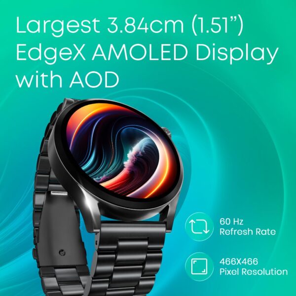 Brilliant 1.51” AMOLED Display: Enjoy crisp detail and smooth scrolling on the 1.51″ AMOLED display with 466×466 resolution, 60Hz refresh rate & 550 nits brightness—ideal smart watch for man or wrist watch for woman.