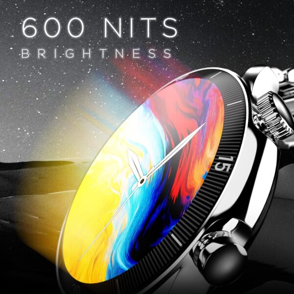 STUNNING 1.43” AMOLED DISPLAY WITH ALWAYS-ON FEATURE: Enjoy crisp, vibrant visuals on a 1.43-inch AMOLED screen with 466×466 resolution and 600 NITS brightness. Premium smart watch for men, Always-On Display keeps time and key updates visible at a glance—no need to raise your wrist.
