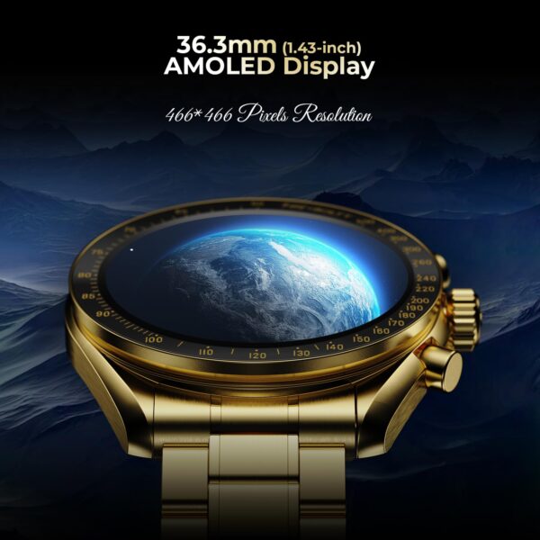 A Glimpse of Elegance: The Moonwatch Smartwatch presents a captivating 1.43-inch always-on round AMOLED display with a striking resolution of 466×466 pixels, offering a visually immersive experience that sets it apart from the crowd.