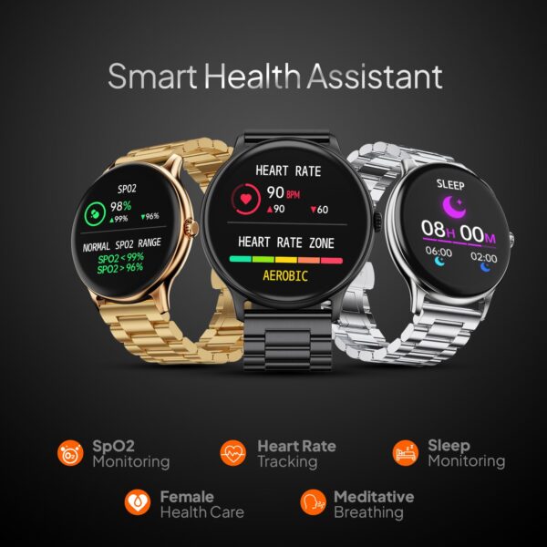 Advanced Health & Wellness Monitoring – Track your heart rate, SpO2 (blood oxygen levels), sleep patterns, and overall wellness in real-time. This fitness smartwatch with health tracking ensures accurate insights for a healthier lifestyle.