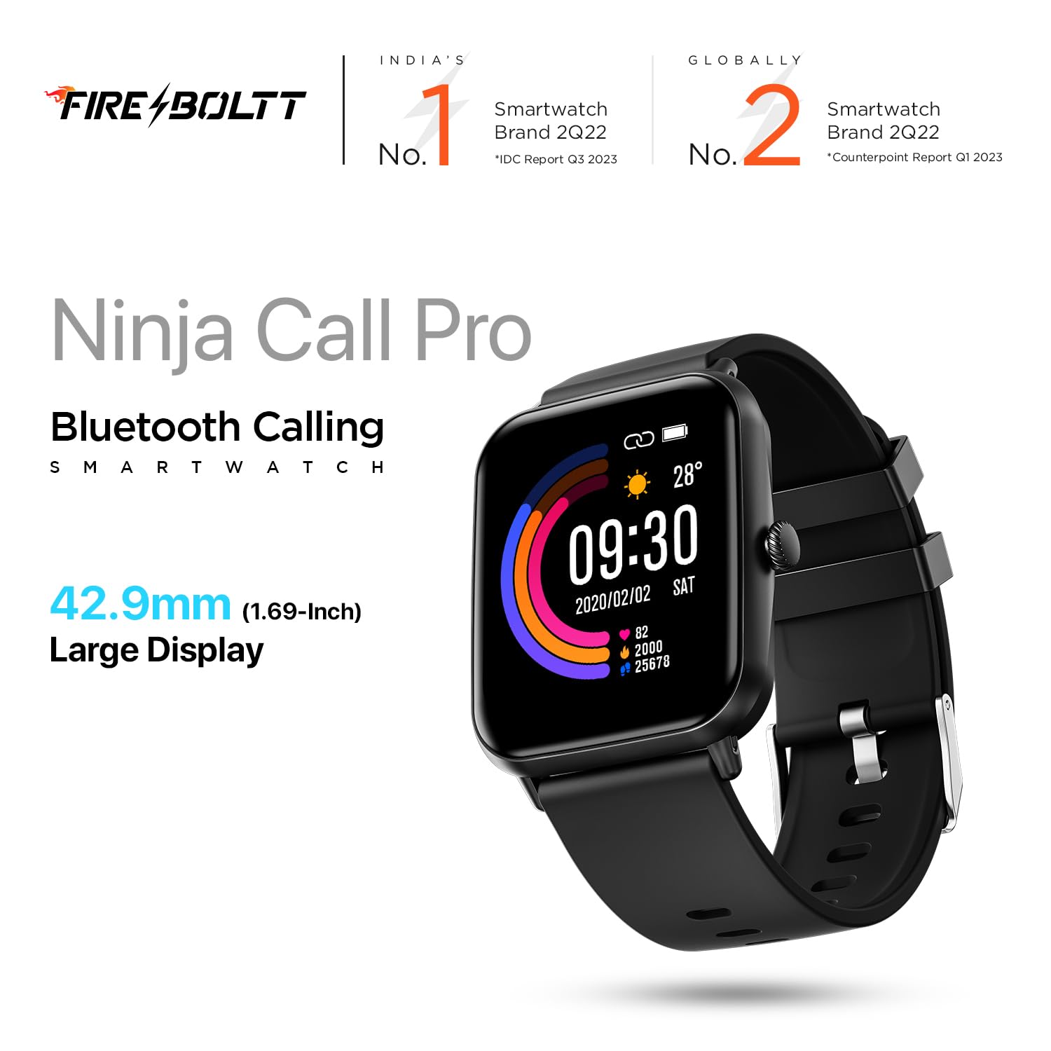 Fire-Boltt Ninja Call Pro Smart Watch with Bluetooth Calling, 1.69 Inch HD Display, AI Voice Assistant, 100 Sports Modes, SpO2, Heart Rate Monitor & Dual Chip, Smart Watch for Man & Woman – Black