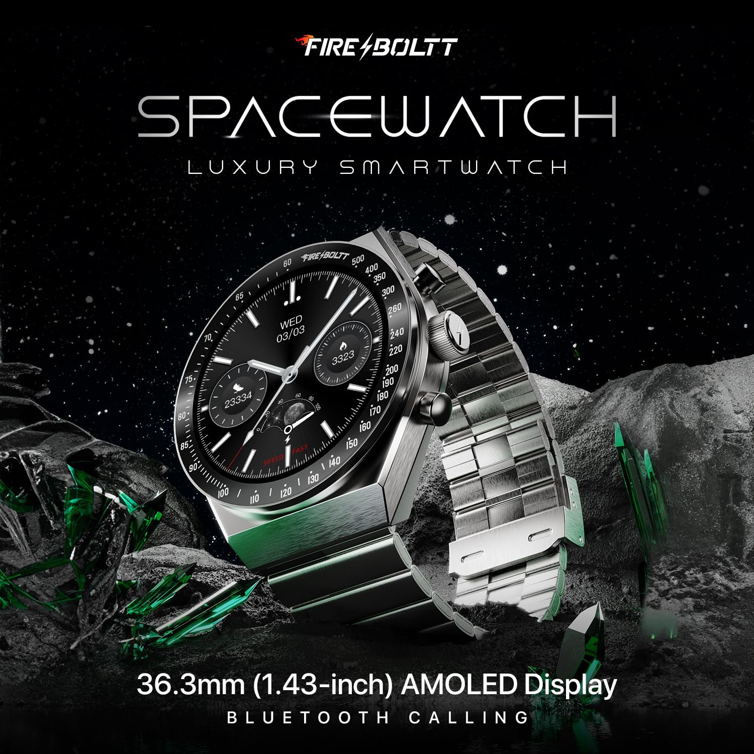 Fire-Boltt Spacewatch 36.3mm (1.43 inch) AMOLED Display, Wireless Charging, Metallic Frame, Stainless Steel Luxury Straps, Complete Health Suite, Bluetooth Calling, Sports Modes