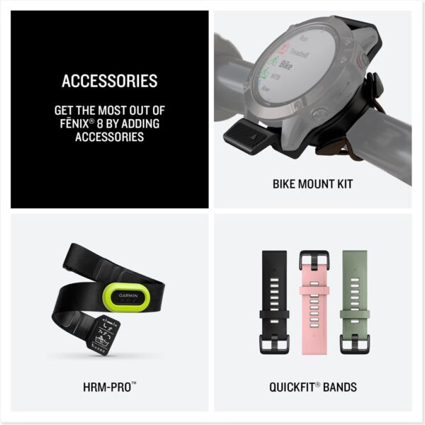 Garmin Fenix 8, 51mm Premium Multisport GPS Smartwatch,AMOLED Touch Screen,Advanced Health and Training Features,Built in LED Flashlight,Adventure Watch with up to 29 Days Battery Life,Slate Gray