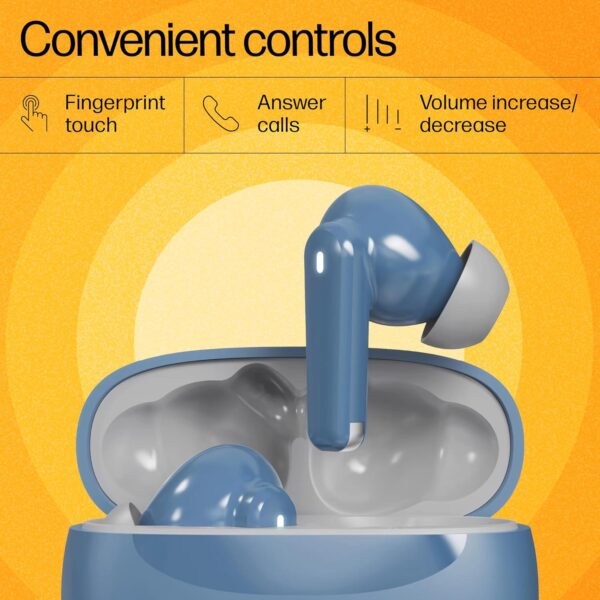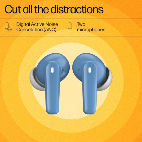 HP H150 True Wireless Earbuds, Bluetooth Connectivity, Digital Active Noise Cancelation, 7 Hours of Playtime, Fingerprint Touch, IPX3 Water-Resistant Design, 1-Year Limited Warranty, Blue, A20QBAA