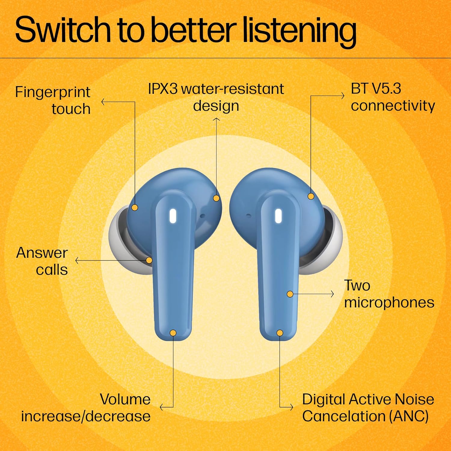 【ACTIVE NOISE CANCELATION】Elevate your communication and enjoy more immersive, clearer audio, even in noisy environments, with digital active noise cancelation and dual microphones.