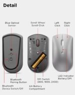 Lenovo 600 Bluetooth 5.0 Silent Mouse: Compact, Portable, Dongle-Free Multi-Device connectivity with Microsoft Swift Pair | 3-Level Adjustable DPI up to 2400 | Battery Life: up to 1 yr