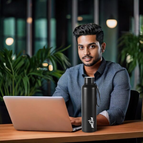 Milton Aura 1000 Thermosteel Water Bottle 1050 ml, 24 Hr Hot and Cold I Leak Proof Lid, ISI Certified I Vacuum Insulated I for Office, Gym, School I Black