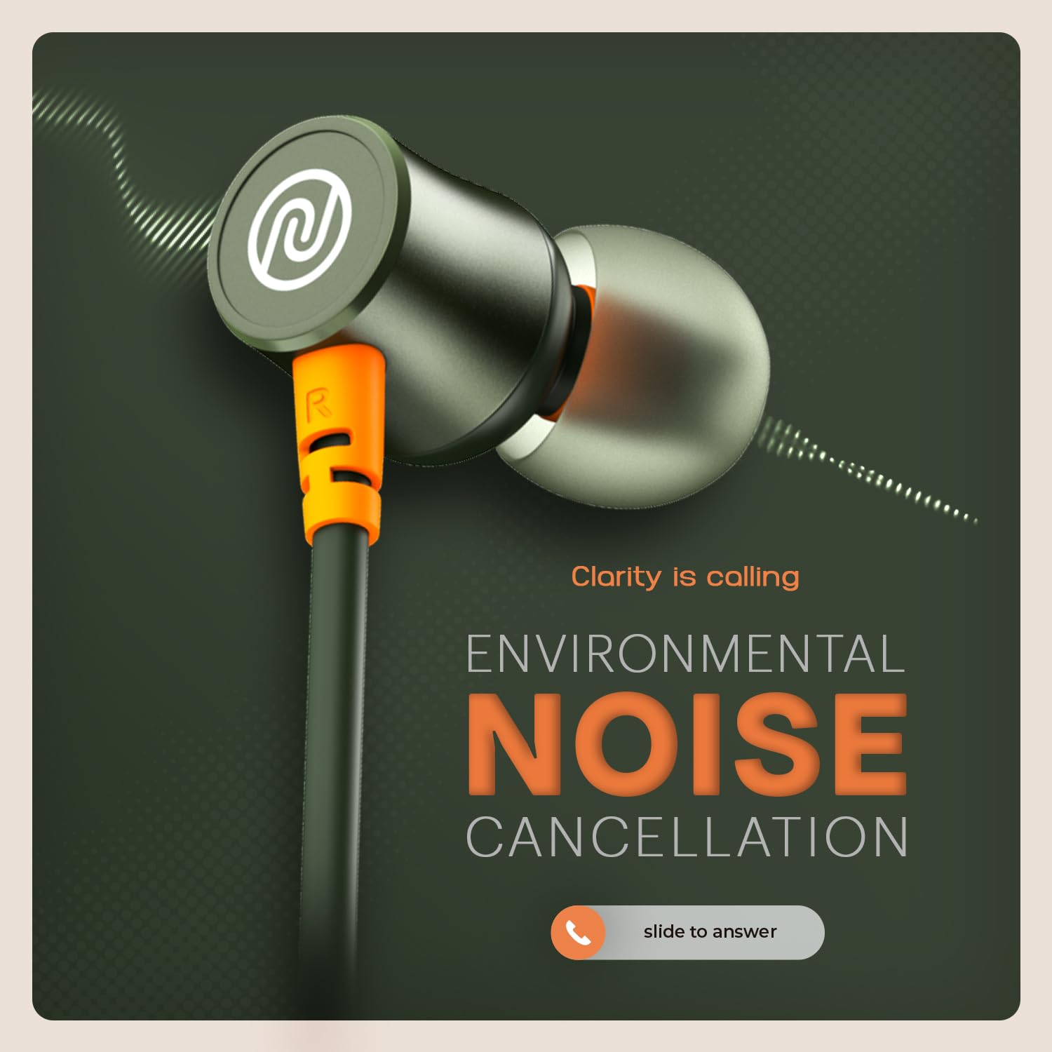 Noise Airwave Bluetooth in Ear Neckband with 50H of Playtime, 3 EQ Modes, ENC for Calling, Low Latency(Upto 50ms), 10mm Driver, BT v5.3(Olive Green)