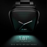 1.81 inches(4.59cms) TFT display, 240*280px, Always on display – No, 550 nits brightness – Enjoy clear and vibrant visuals on its big and bright TFT display.;Up to 7-day battery life – Get up to 7 days of battery life & up to 2 days of power with calling activated. (Battery life can vary due to multiple factors such as turning on continuous HR tracking or turning up the brightness)