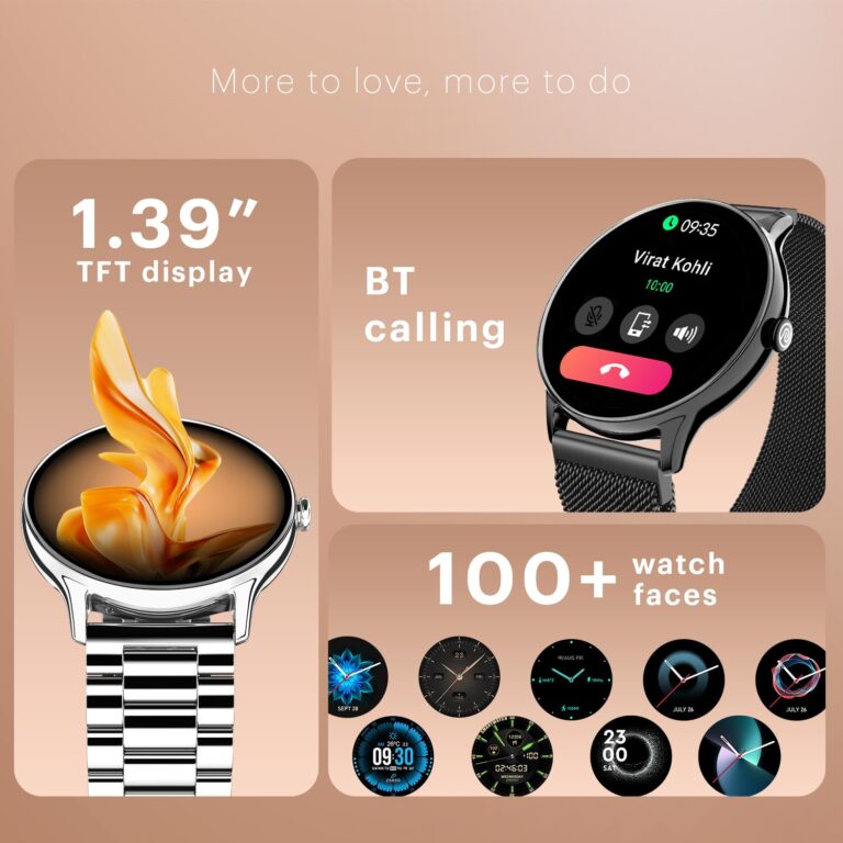 Metal build: Discover the perfect blend of sophistication and innovation featuring a glossy metal build and a sleek dial.;1.39″ display: See every detail come to life on your wrist.