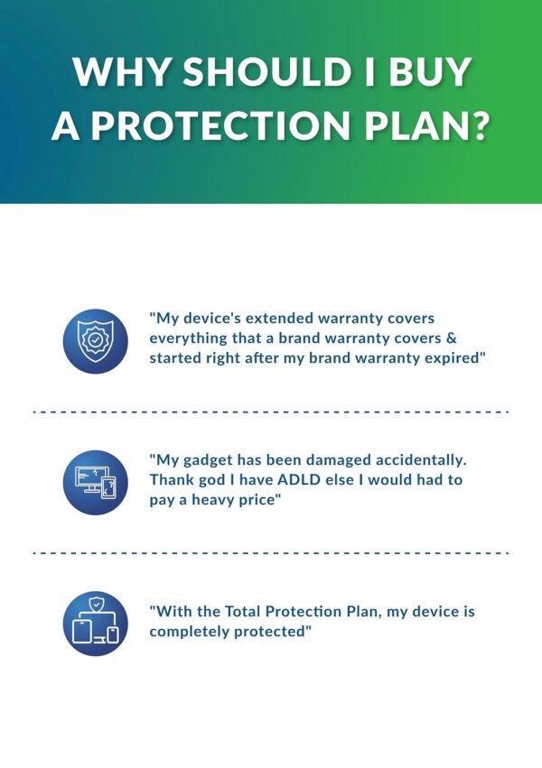 The Accidental and Liquid Damage claim Service valid from date of purchase till plan duration. Unlimited Claim with sum insured.