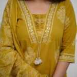 Generic Name : Women’s Pure Cotton Printed With Handwork Kurta with Pants and Dupatta Set