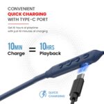 [TYPE-C PORT FOR FASTER CHARGING] : Easy and fast charging with the Type-C charging port of the Harmonics Z5 neckband. Charge these wireless earphones for just 10 minutes and get a playback time of 10 hours.