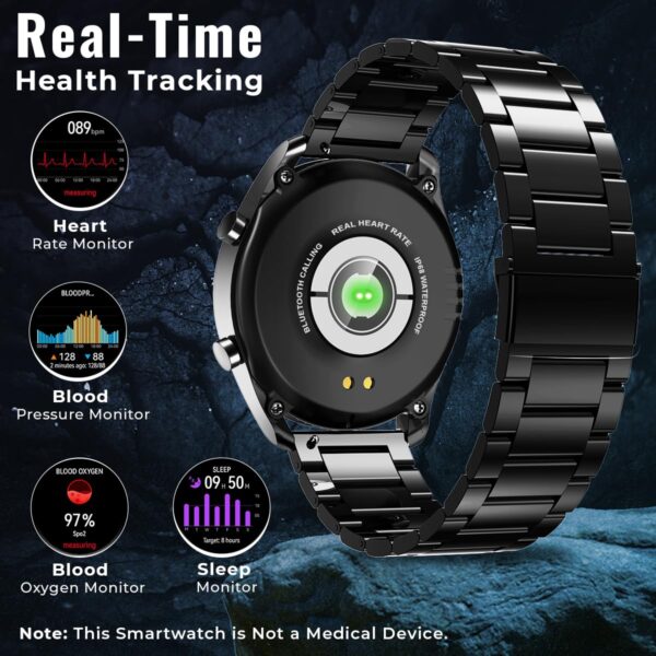 Know Your Health: Real-time HR Tracking; SpO2 Blood Oxygen; Blood Pressure Check; ECG; Sleep Monitor; Sedentary Alert; Sports & Fitness Tracking; Step Count & Calories Burnt; Distance Traveled