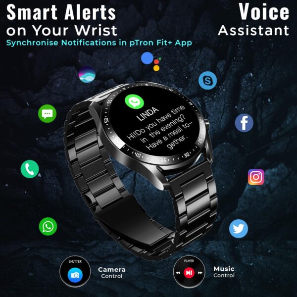 pTron Force X11P 1.3″ Round Smartwatch with Bluetooth Calling, Full Touch Display, Metal Strap, Heart Rate Tracking, SpO2, 100s Watch Faces, 5 Days Battery Life, Fitness Trackers & IP68 (Cobra Black)