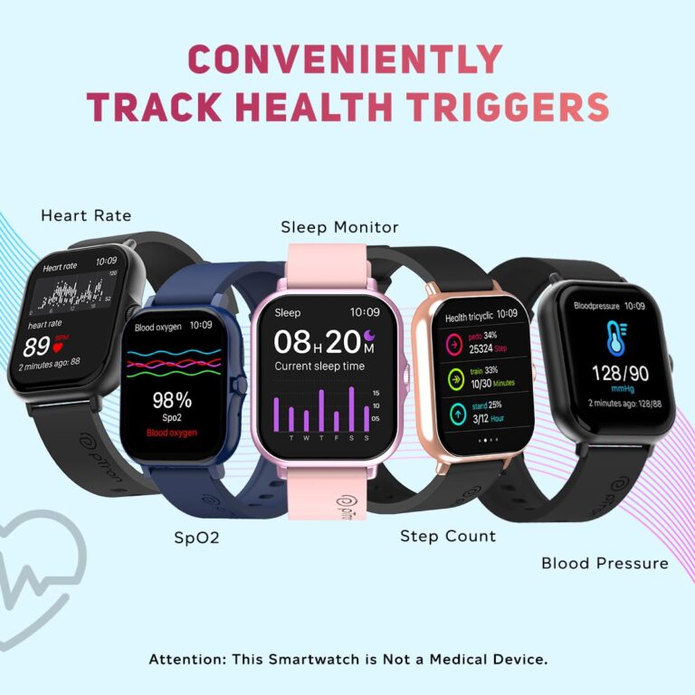 This smartwatch is not a medical device. Heart rate, SpO2, blood pressure readings must not be used for self-treatment | Box contains 1 x smartwatch, 1 x charging cable, 1 x user guide card; Download & install “pTron Fit+’ App from Playstore/Appstore, Turn On Bluetooth on your phone, and bind the smartwatch to the App. Enable functions like Message Push, Wrist Sense, Do not Disturb, etc.