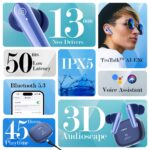 pTron Newly Launched Bassbuds Prism TWS Earbuds with 3D AudioScape, 45Hrs Playtime, TruTalk AI-ENC Calls, 50ms Low Latency Sync, BT5.3, Type-C Fast Charging, Voice Asst. & IPX5 Water Resistant (Blue)
