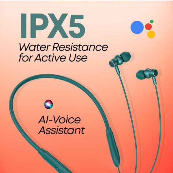 pTron Tangent Flex Bluetooth 5.3 Wireless In Ear Headphone with Mic, 38H Playtime, 13mm Driver, Dual Device Pairing Wireless Neckband, Type-C Charge, Magnetic Buds & IPX5 Water Resistant(Forest Green)
