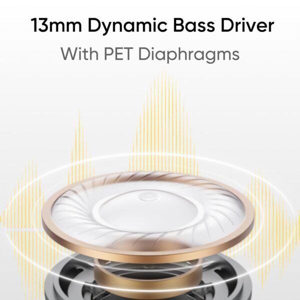 Feel the power of deep, rumbling bass with realme Buds T01. Featuring a robust 13mm dynamic bass driver, it produces clear and crisp sound for a truly enjoyable audio experience.