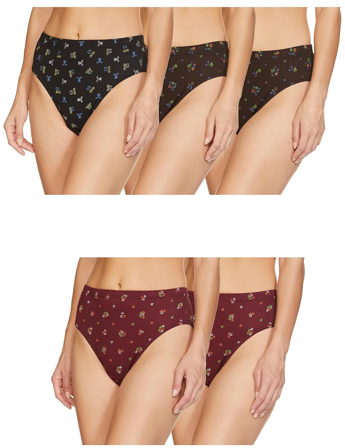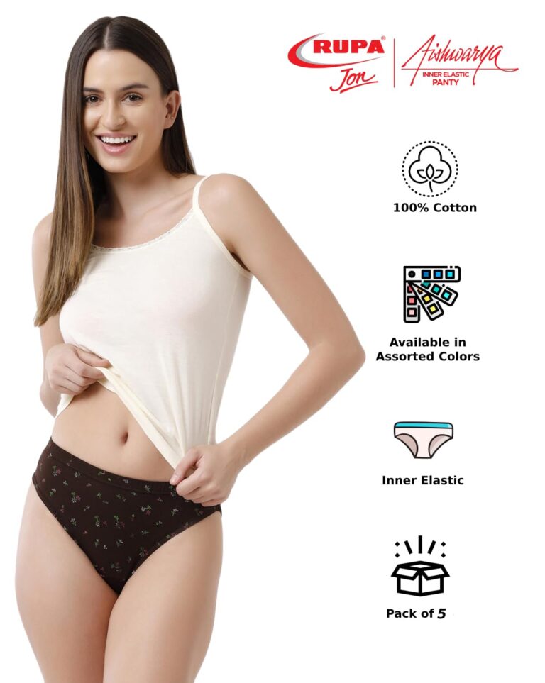 Rupa Jon Ashwarya Printed Panties for Women, 100% Cotton Fabric, Anti-Bacterial, Pack of 5