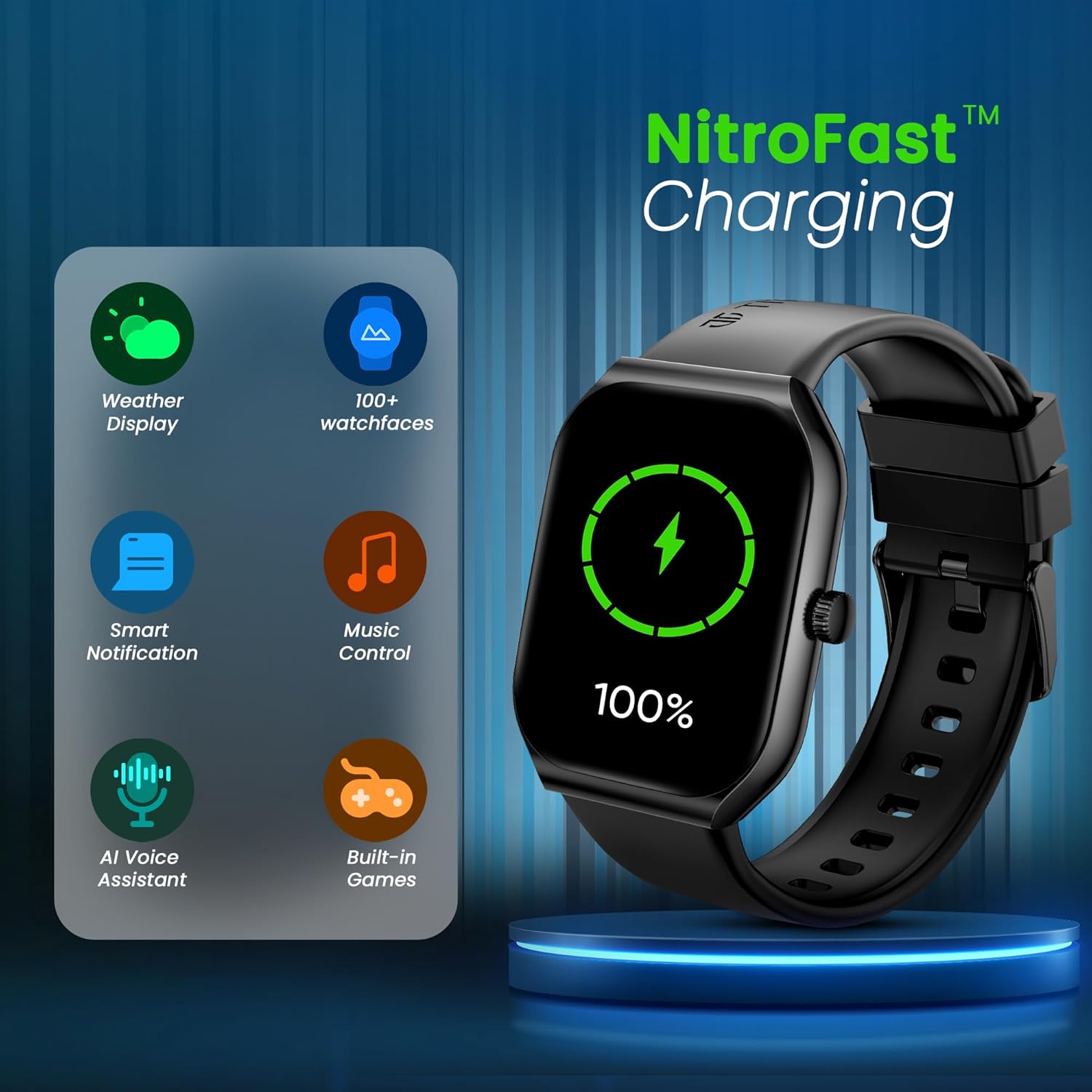Advanced 110+ Sports Modes, 200+ Watchfaces, In-Built Games, AI Voice Assistant and many more handy features at a single tap