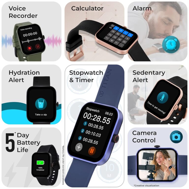 Titan Talk S with 1.78″ AMOLED Display|Advanced BT Calling|Music Storage with Wireless Audio Connect|100+ Sports Modes|Animated Watchfaces|5 Days Battery|IP68 Water Resistant|Stress & Mood Monitor