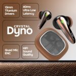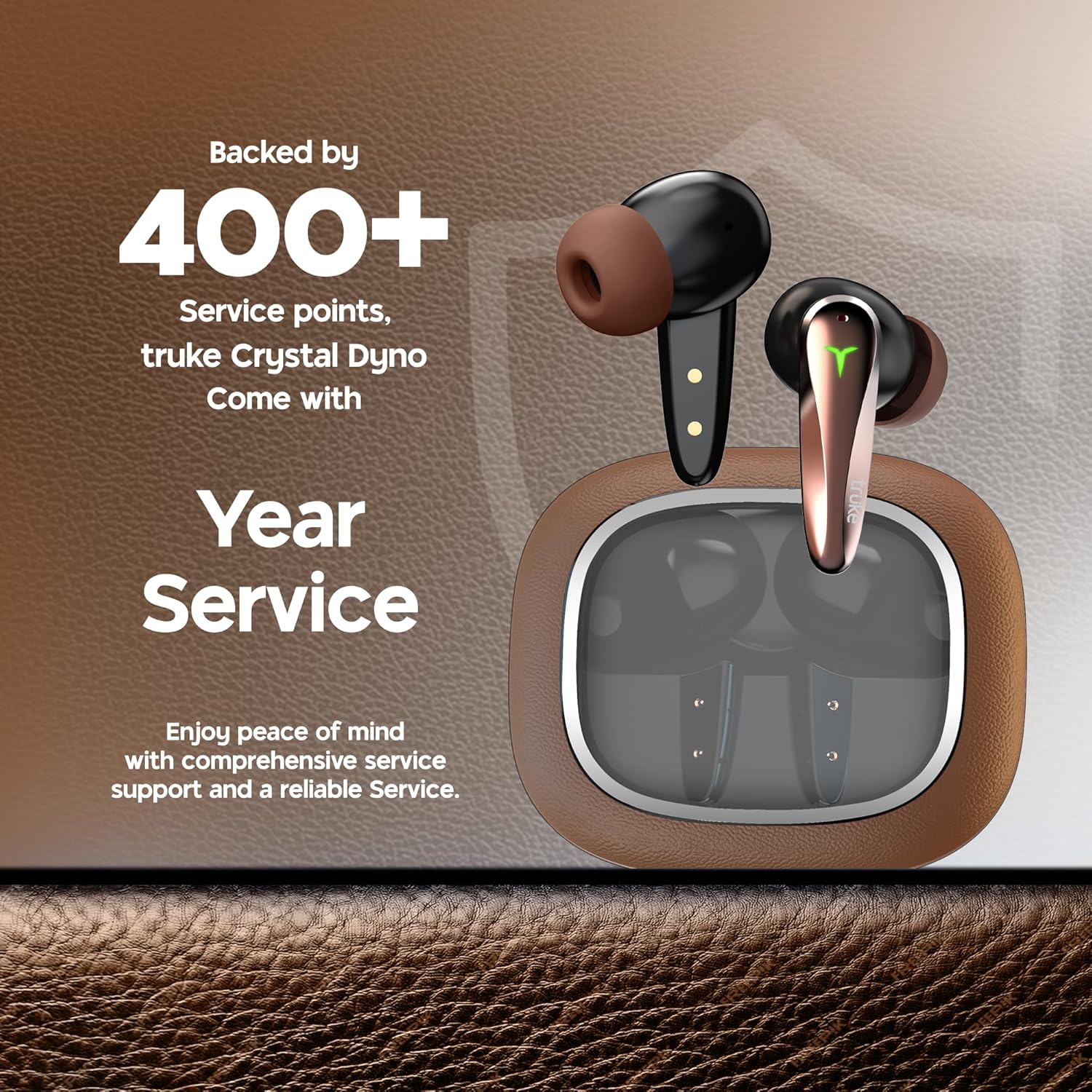 truke New Launch Crystal Dyno Leather Finish True Wireless in Ear Earbuds w/Spatial Audio, 70H Battery Rapid Charge Ear Buds, 13mm Driver HiFi Sound TWS, 40ms Ultra Low Latency, 4Mics ENC – OakBrown
