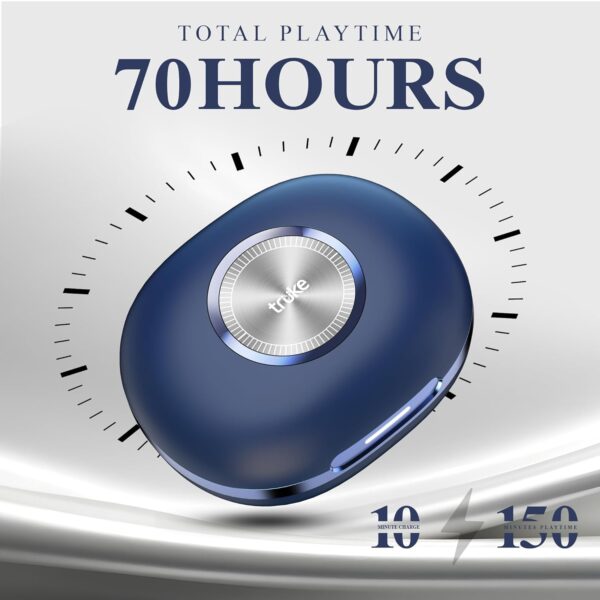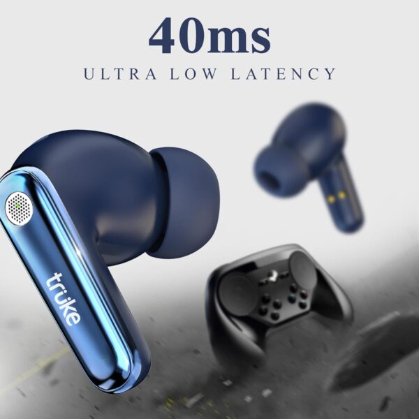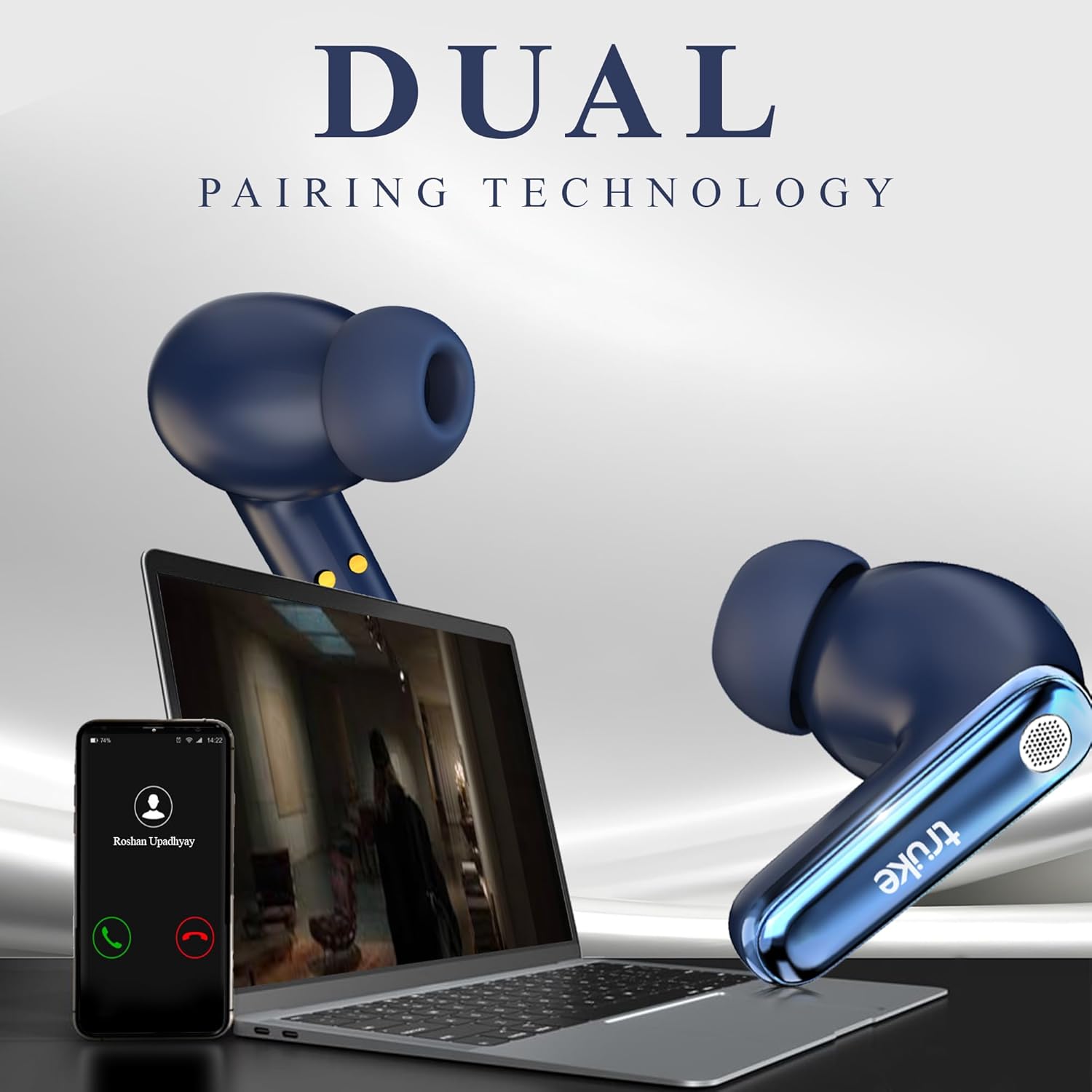 truke New Launch Mega 10 True Wireless in Ear Earbuds W/ 24-Bit Lossless Spatial Audio, 70H Battery Fast Charge Buds, Dual Pairing, 13mm Drivers TWS, Low Latency(40ms), Matte Finish, ENC (Royal Blue)