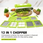 This 12 in 1 Multipurpose Chopper comes with a large, unbreakable plastic container for durable and safe food storage.