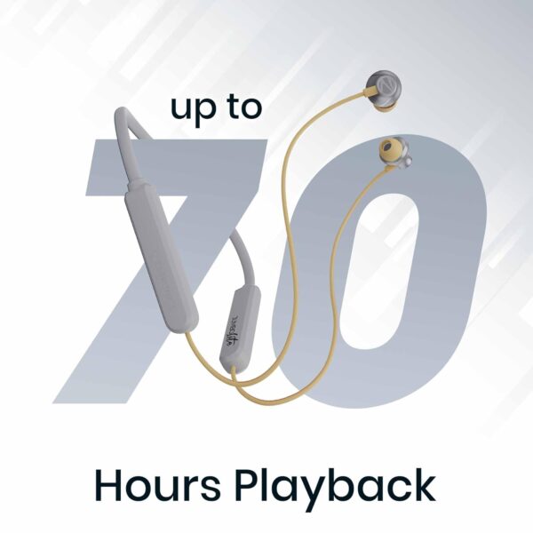 Bluetooth v5.2 enabled Wireless Neckband earphone JUMBO LITE ZEB-YOGA 7 supporting 70* Hours of backup time with optimized power consumption.;Experience delay less gaming like never before! The neckband supports Upto 50ms Low latency Gaming mode.